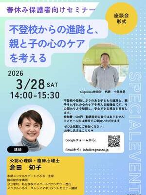 2026年03月28日 @ 14:00 – 15:30 – 不登校や登校しぶりのあるお子さんをお持ちの保護者の方へ。 春休みのこの機会に、子どもの進路と、親子それぞれの心 […]