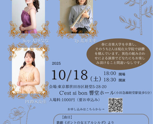 2025年10月18日 @ 18:30 – 20:00 – トランペットとソプラノという他では聞けない珍しい組み合わせによる演奏が盛り沢山です。二つの異なる楽器が奏でるハ […]